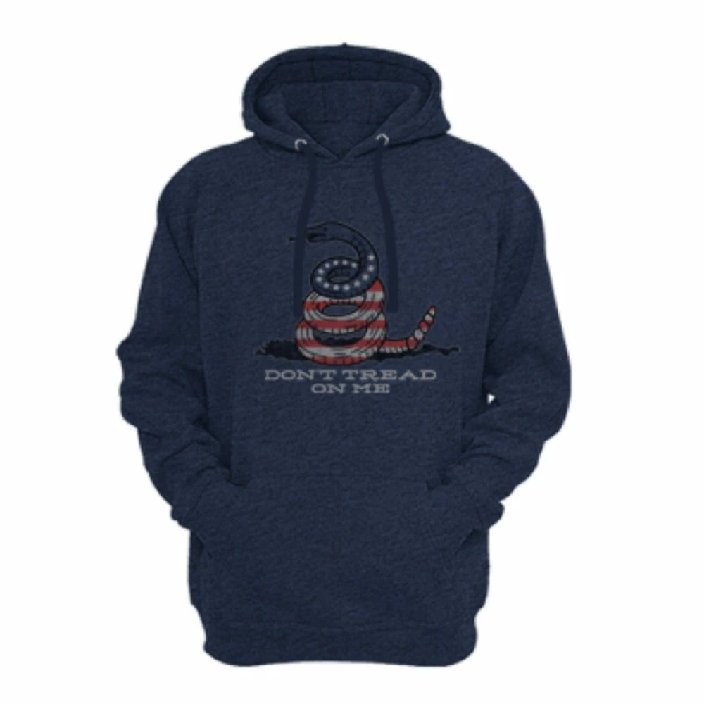 - Front chest Patriotic Tread on Me screen print.